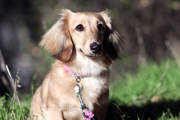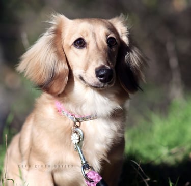 Delilah is our sweet ee cream (light cream) from Signature's Dachshunds. Her sire is from South Africa and has many champions behind him. She is silly and sweet, and is as mischievous as they come! She is PRA clear and will have her OFA patellas and heart clearances as soon as she is old enough. She has a goofy, floppy persona and adores everyone. Never met a stranger, and adores children! We can't wait to see how she matures in the future!